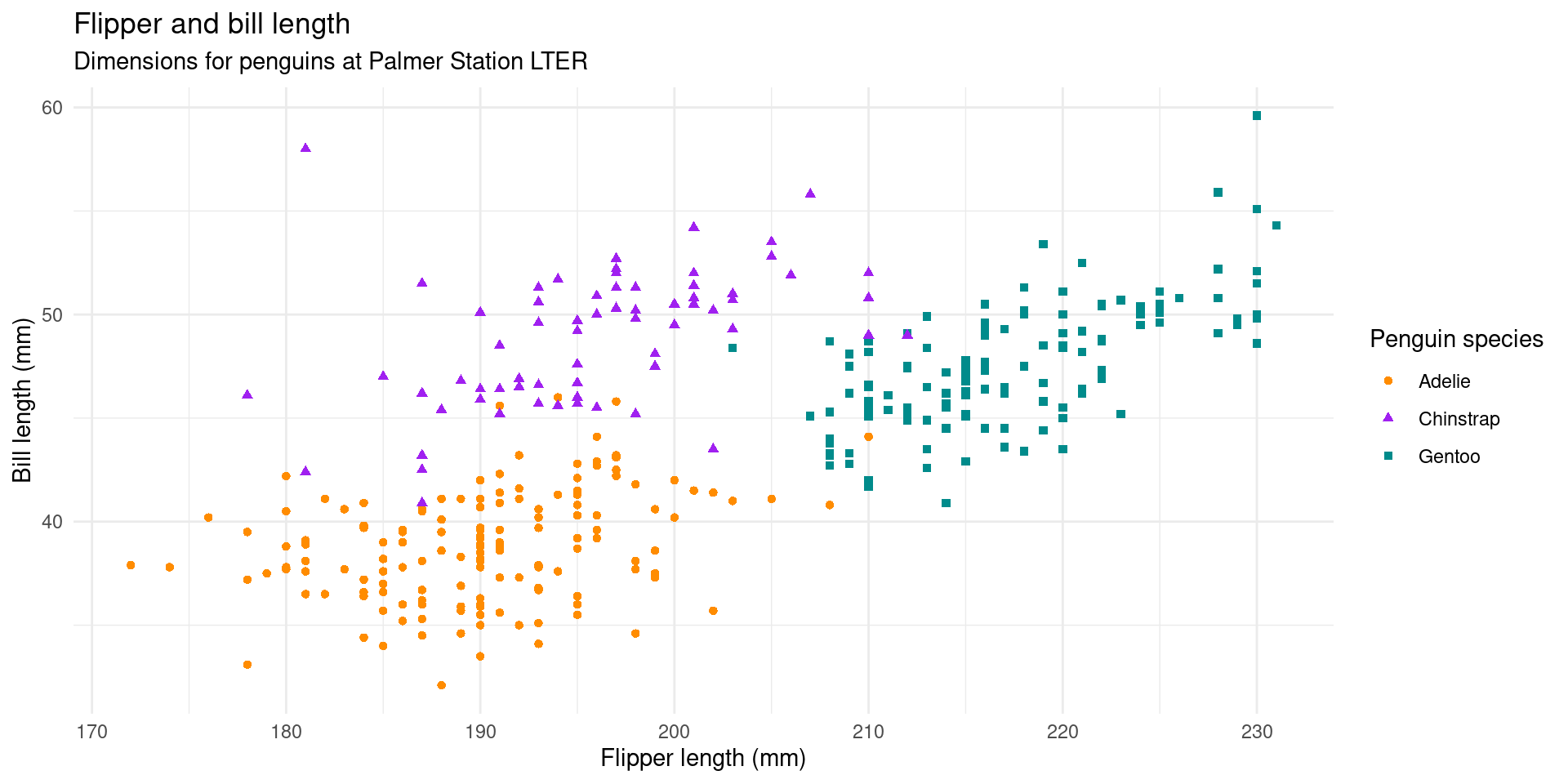 color = "Penguin species", shape = "Penguin species"